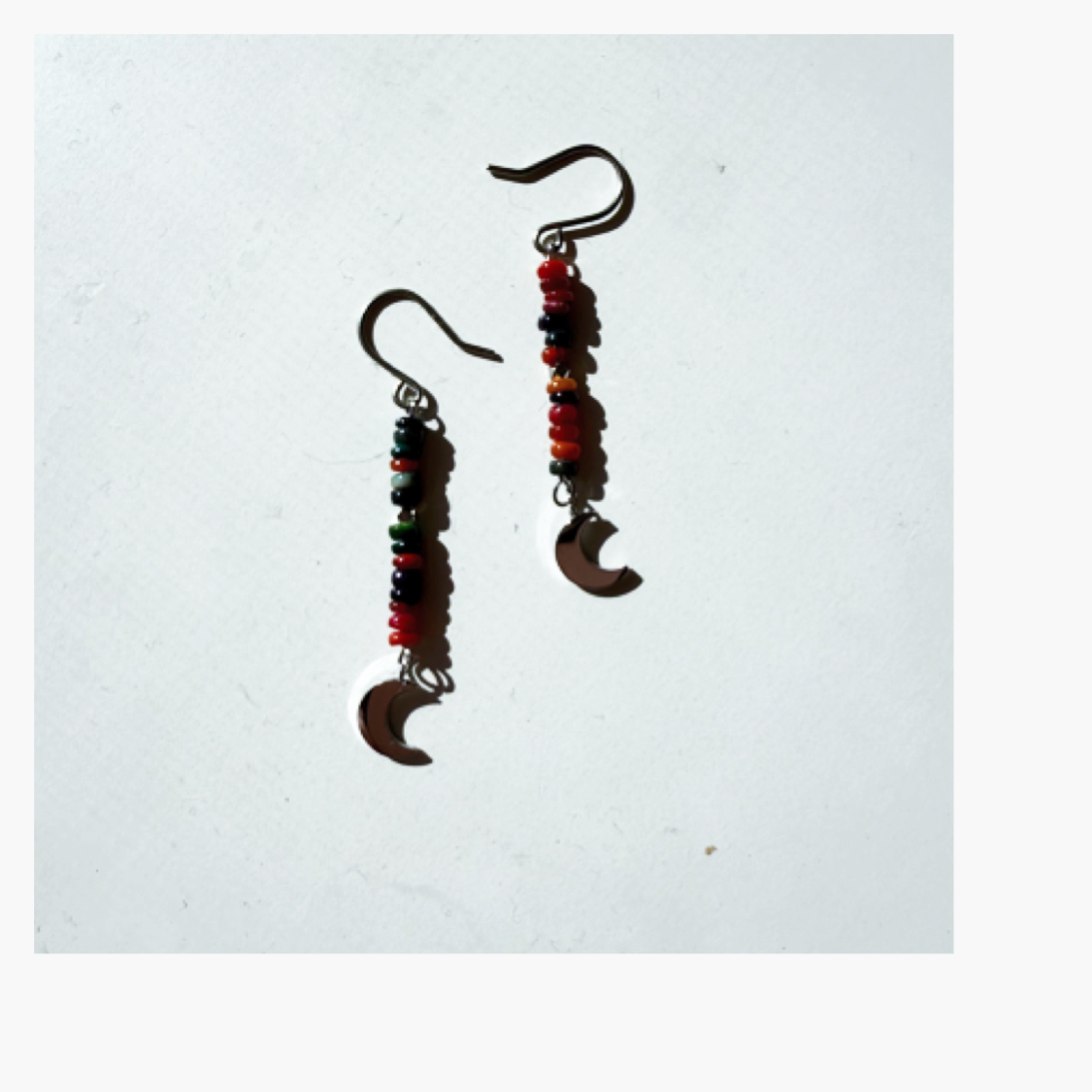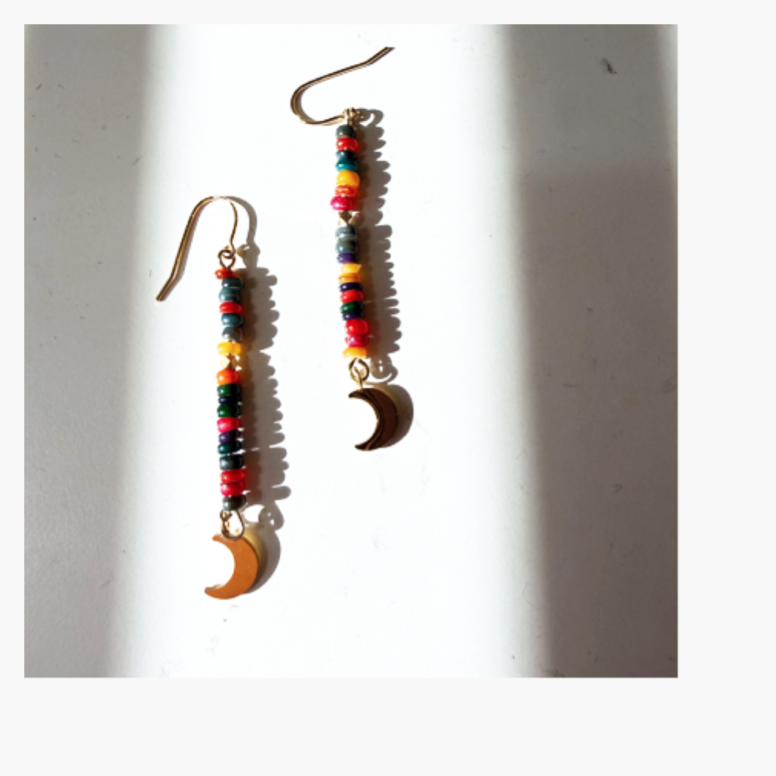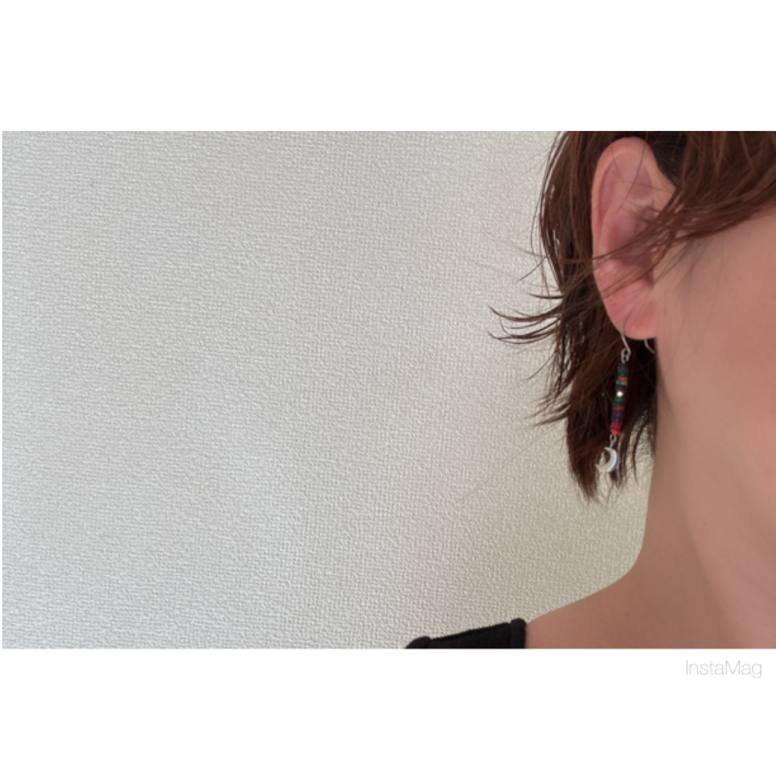 カラフルなビーズとムーンモチーフを合わせたピアス、イヤリングです。