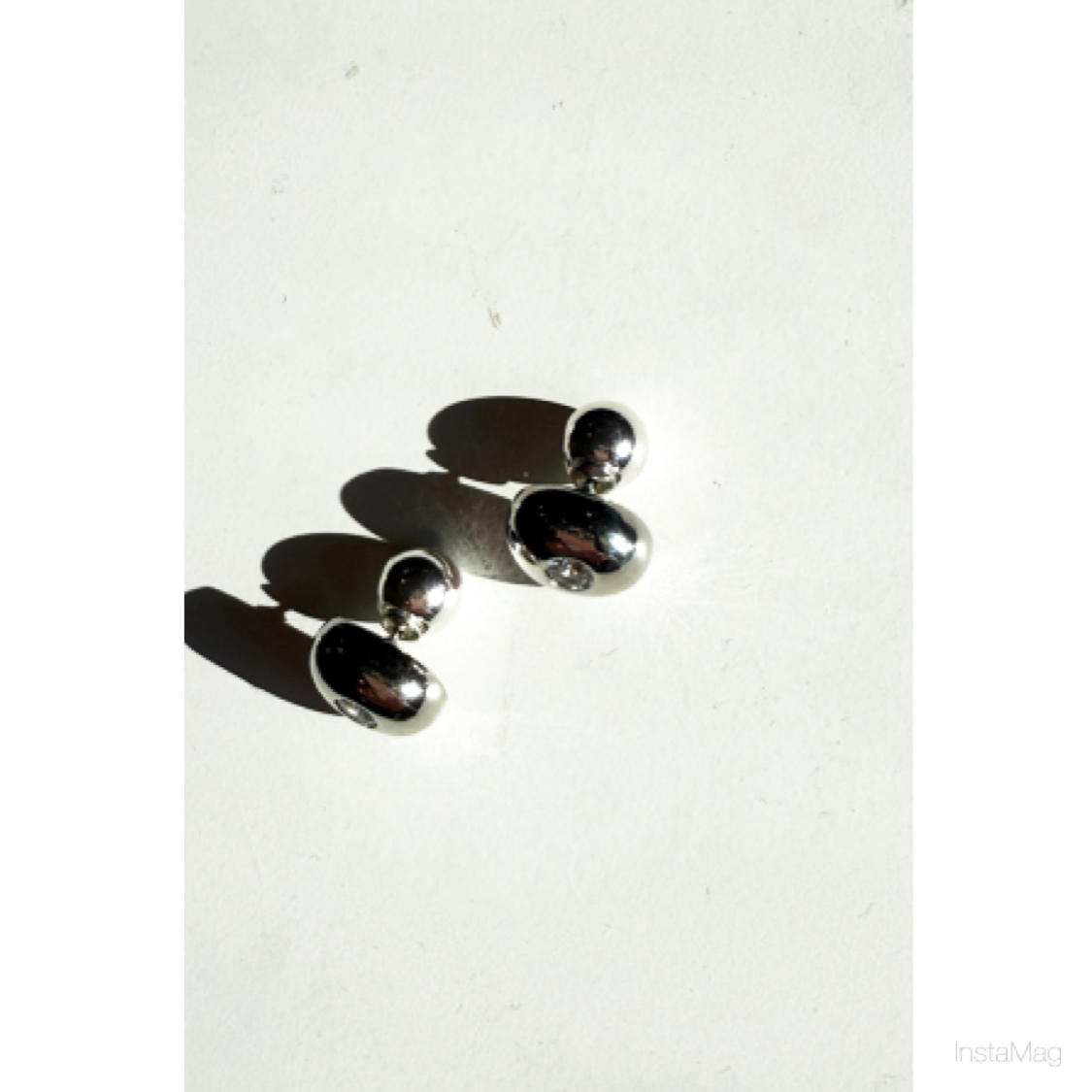 キラキラのキュービックの入ったミニマルなシルバーピアス。